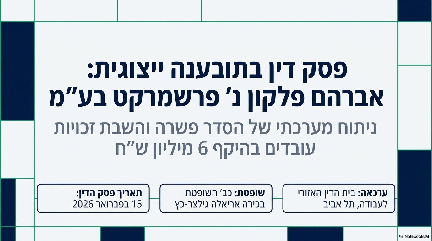 פסק הדין נגד פרשמרקט הוא תזכורת לכך שהעידן שבו מעסיק יכול היה "להחליק" טעויות חישוב קטנות נגמר. בעולם של שקיפות וייצוגיות, כל שינוי קטן בשיטת חישוב השעות הנוספות יכול להפוך לפצצה מתקתקת של מיליוני שקלים.